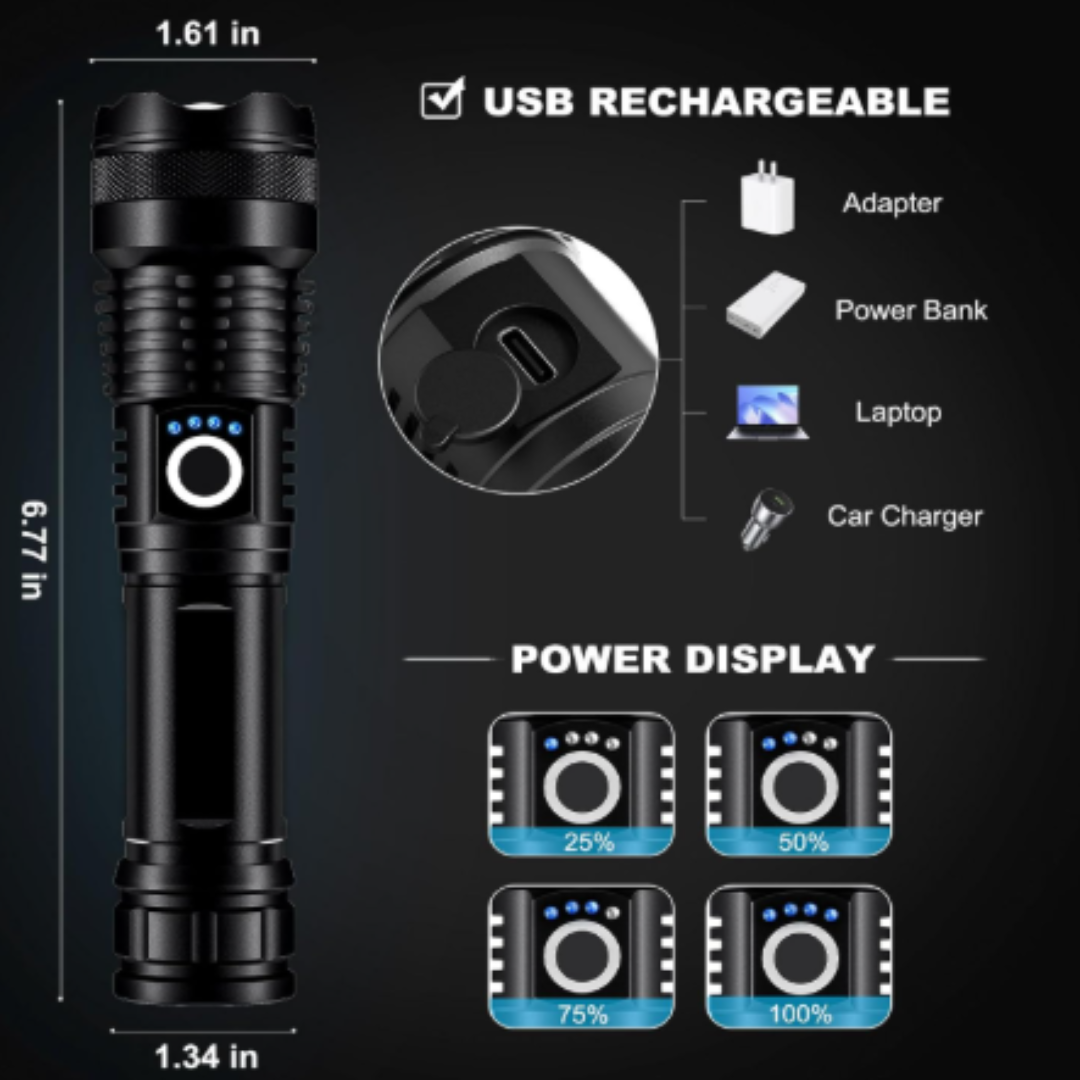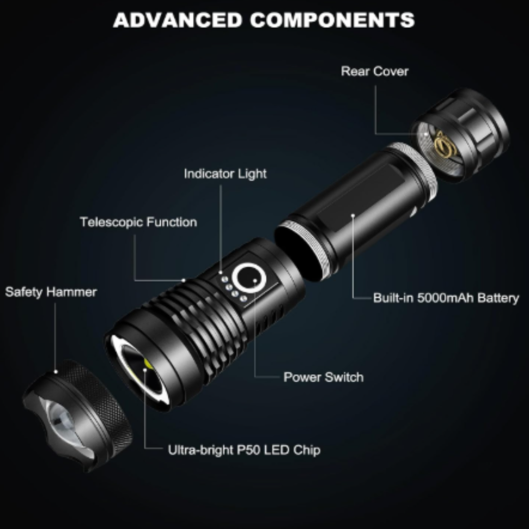 "¿Tu linterna no aguanta el ritmo? Te Presento la P50. Linterna de alta calidad que se adapta a cualquier circunstancia.